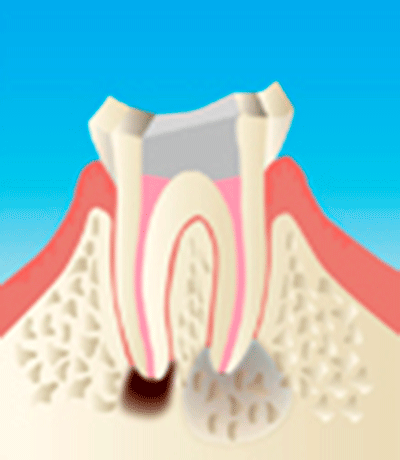 It is said that the success rate of root canal treatment is 47.2% when the bone has dissolved more than 5.0mm. (Quoted from the following* paper)