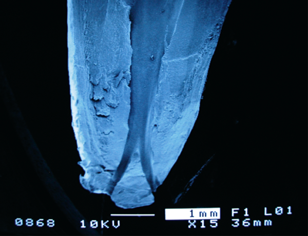 The area I thought I had cleaned up to the apex of the root was actually the intersection area far above the apex. (Figure 3)